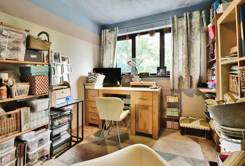 3.9mx2.8m This study room is a haven for productivity and organization. It boasts: Stylish bookcases for ample storage, bright window overlooking the front, convenient power points for your devices, central heating radiator and a central ceiling light.